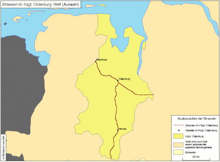 Titel/ Title: Straßen im Großherzogtum Oldenburg (Landesteil Herzogtum Oldenburg) 1848